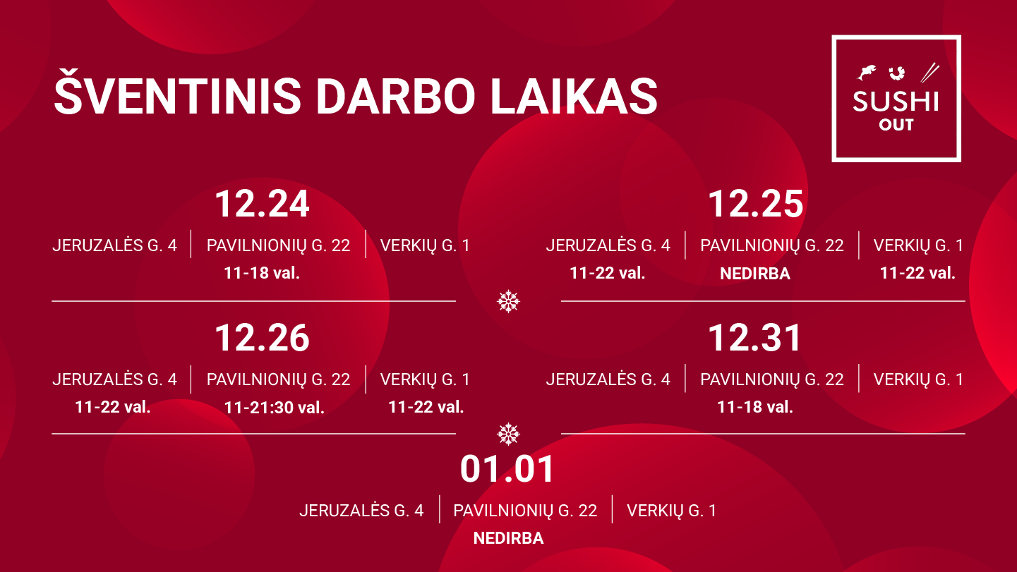 🌟 Nauja! Rinkinys Šventinis Hitas jau meniu. 12.24 ir 12.31 – užsakymai tik iš šventinio meniu. Rezervuok iš anksto restorane arba telefonu. 🌟
