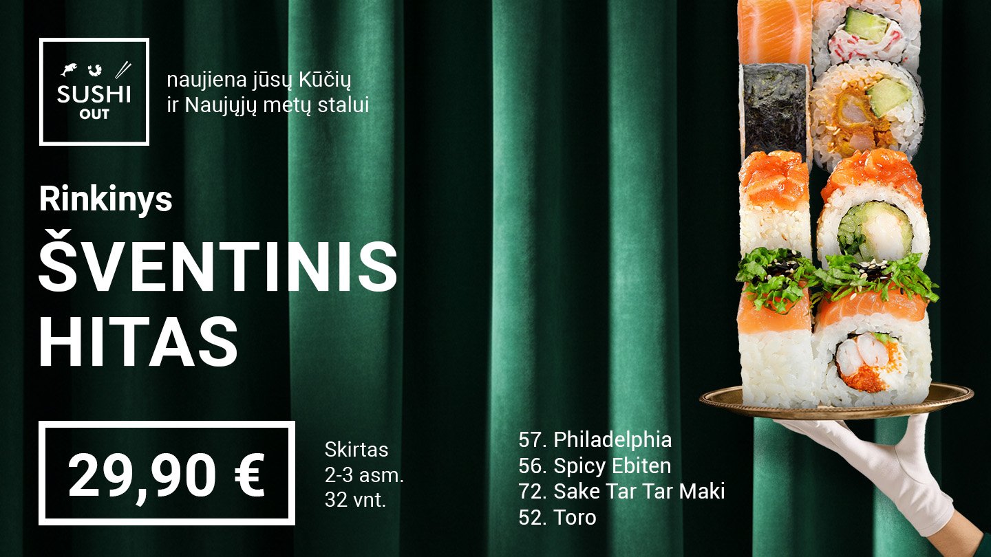 🌟 Nauja! Rinkinys Šventinis Hitas jau meniu. 12.24 ir 12.31 – užsakymai tik iš šventinio meniu. Rezervuok iš anksto restorane arba telefonu. 🌟